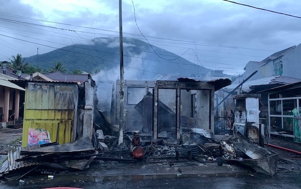 Satu ruko alias rumah toko di Kelurahan Bastiong Talangame, Kecamatan Ternate Selatan, Kota Ternate, dilalap si jago merah, Senin dinihari, 2 Juni 2025.