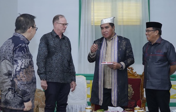 Kunjungan kehormatan Duta Besar Austria ini diterima dengan hangat oleh Sekda Tidore Ismail Dukomalamo dan Jojau Kesultanan Tidore Ishak Naser.